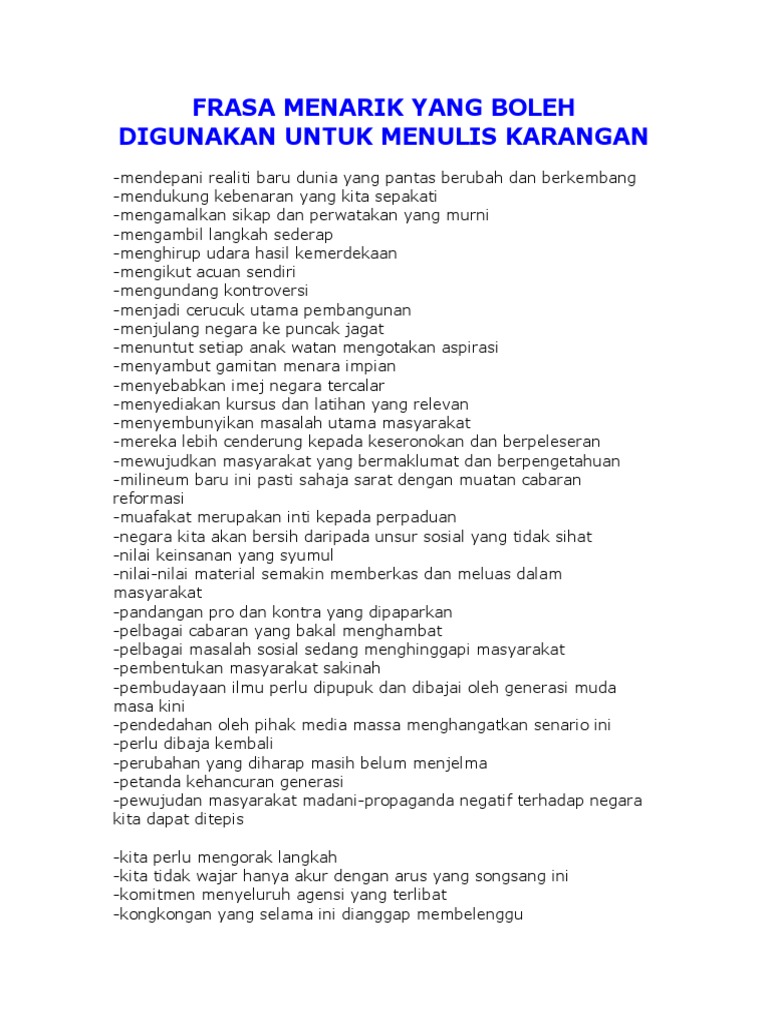 Frasa Menarik Yang Boleh Digunakan Untuk Menulis Karangan Pdf